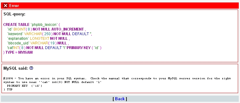 I'm trying to install it in my Forum but I have a problem with the SQL statement when I run it in the phpMyAdmin.