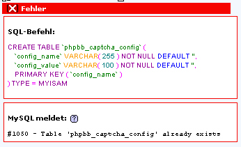 AmigaLink hat geschrieben:Der Fehler besagt das die Datenbank-Tabelle bereits existiert. Ich vermute also mal das du den SQL-Befehl zweimal ausgeführt hast.