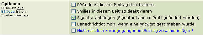 AmigaLink hat geschrieben:Nicht wundern. Das Feld zum abschalten des Double Post Merge erscheint nur, wenn die Beiträge auch wirklich zusammengefügt würden. :)