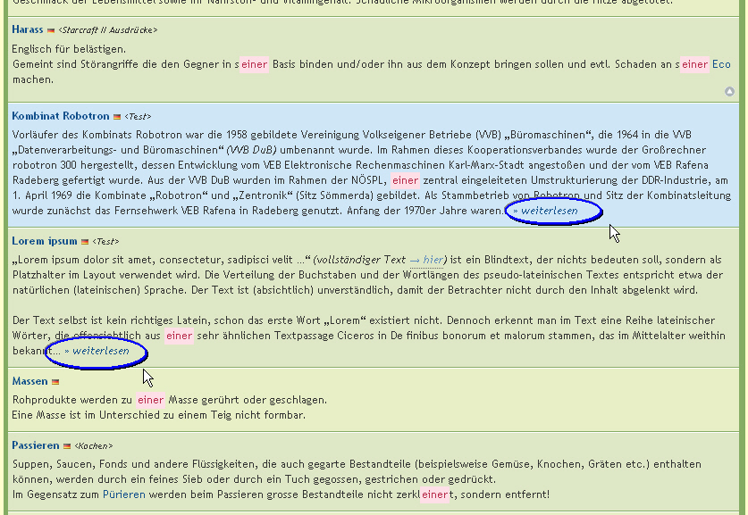 Da der Text sehr Umfangreich ist, hat er mich dazu bewegt mal eben die (eh geplante) "Begrenzung des angezeigten Beschreibungstextes" zu Basteln. Es existiert nun ein Limit von 100 Wörtern, welches umgangen wird wenn man einen Eintrag einzeln aufruft. :P