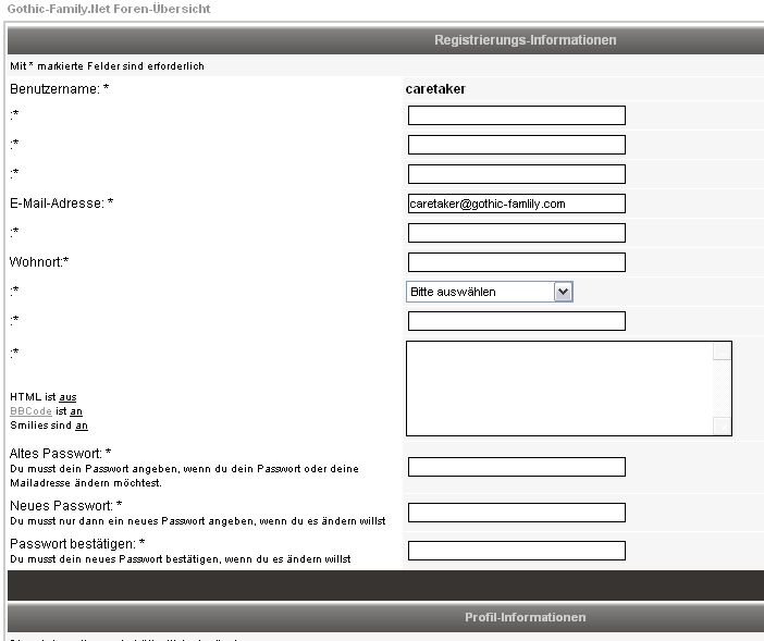 wenn ich auf die registrierungsseite klicke (profil), dann zeigt er mir zwar nun die seite an (dank php), aber die meisten felder werden nur mit ":" angezeigt... und unter der offenen profilseite steht auch nur "zerhaktes" zeuch... ich habe mal screenshots angehängt...