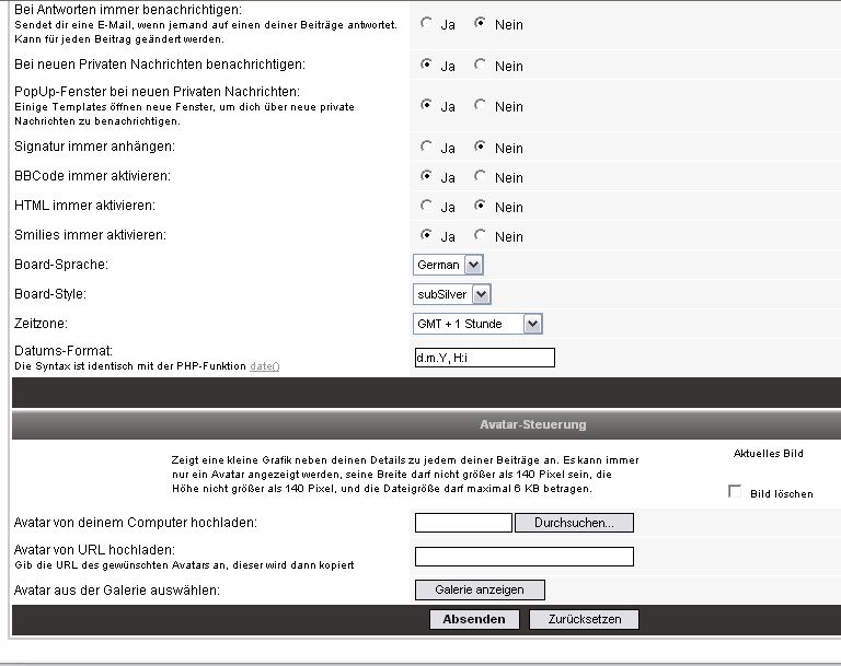 da musste ich viele angaben machen (Neue felder: vorname, nachname, gebdatum, plz, bland (=bundesland), kinder, llink (=lieblingslink), profiltext (mehr als nur interessen!)...