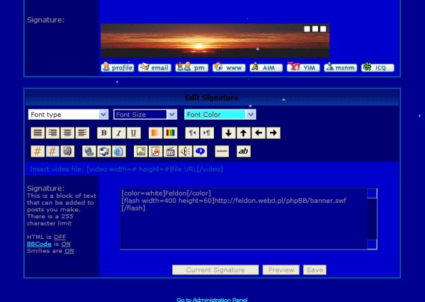 My english is very bad and I know that meny, meny people wil like to use Signature Editor with a BBcode and be able to directly Preview signature with out to SAVE every time.