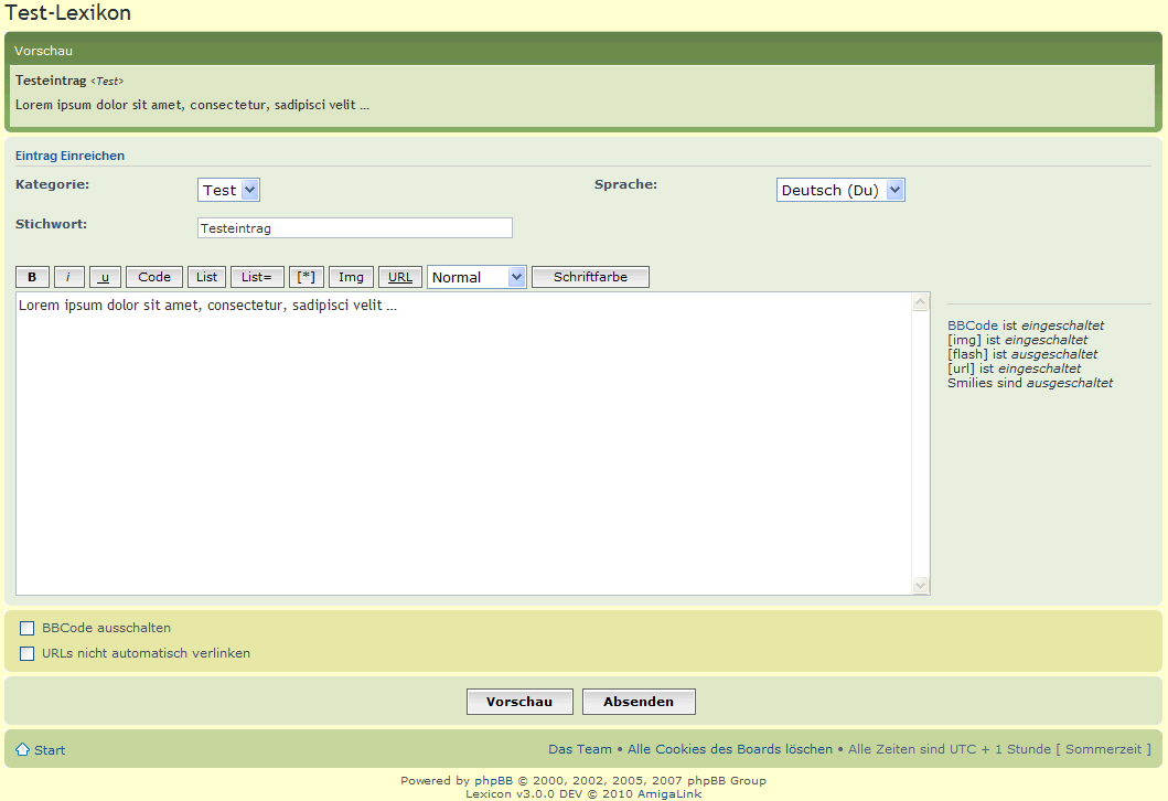 Hier mal ein paar Bilder vom Eintragsformular (mit deaktivierten Smilies) und dem MCP zum freischalten von wartenden Einträgen: